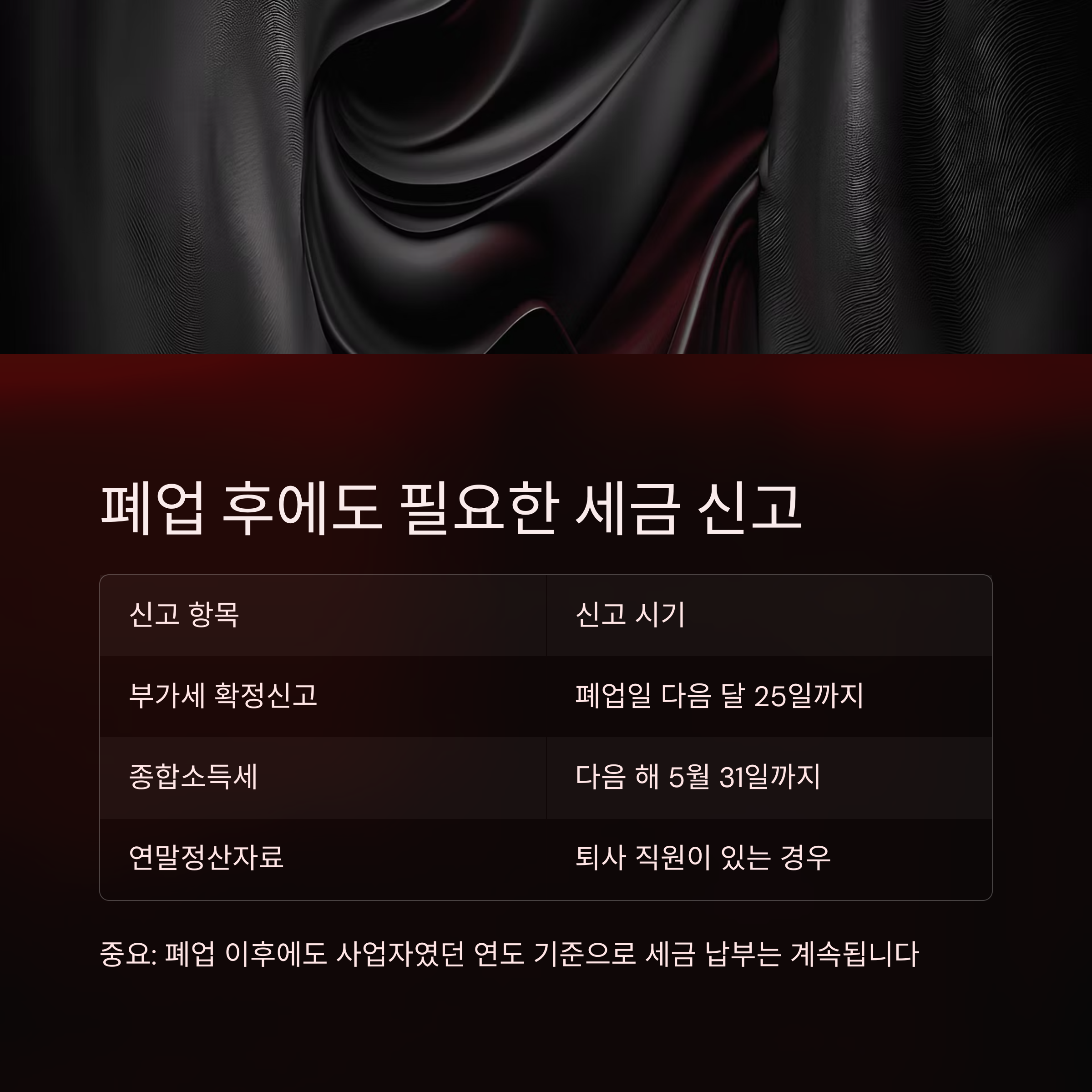 중요: 폐업 이후에도 사업자였던 연도 기준으로 세금 납부는 계속됩니다
