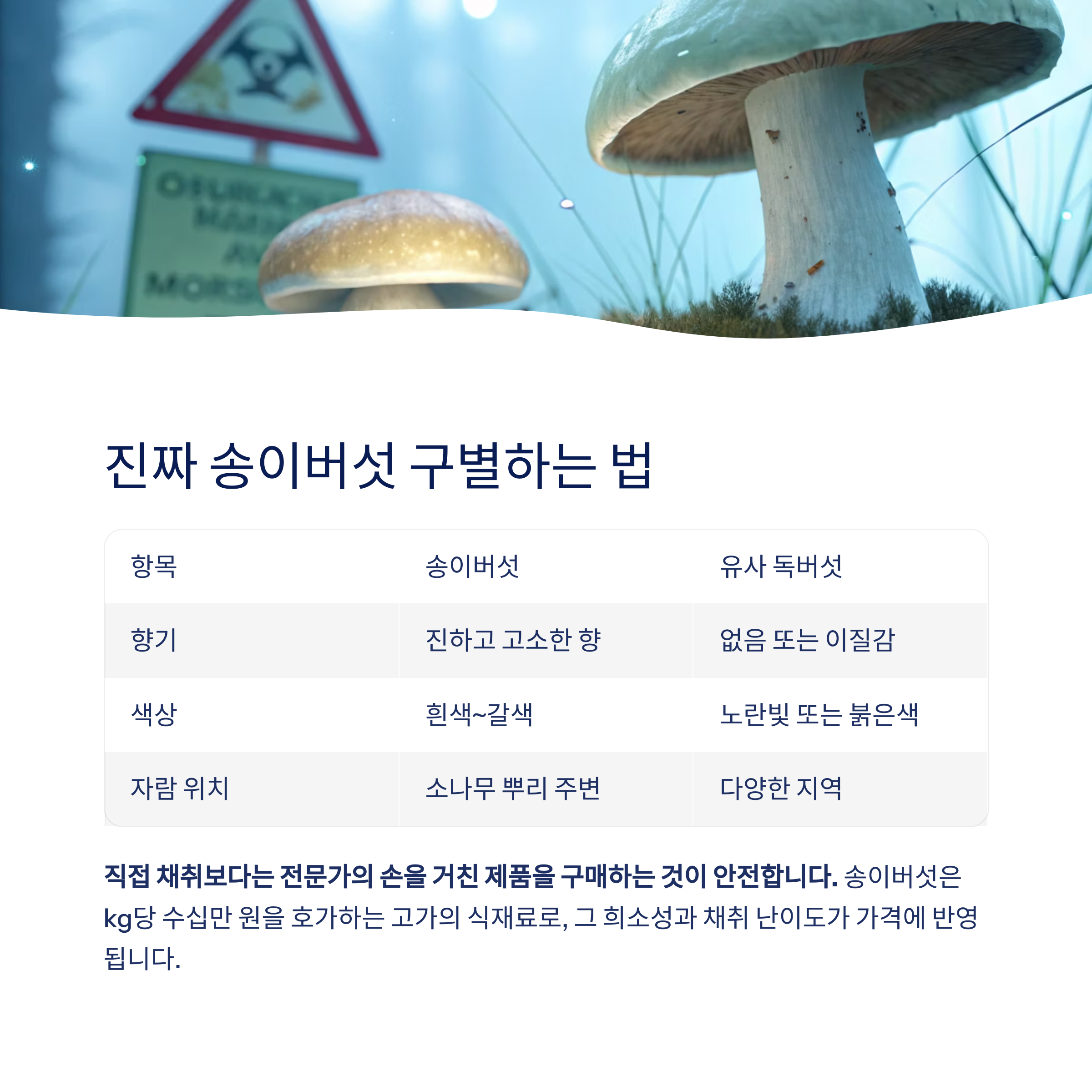 송이버섯은 비슷한 외형을 가진 독버섯과 구분이 필요합니다.