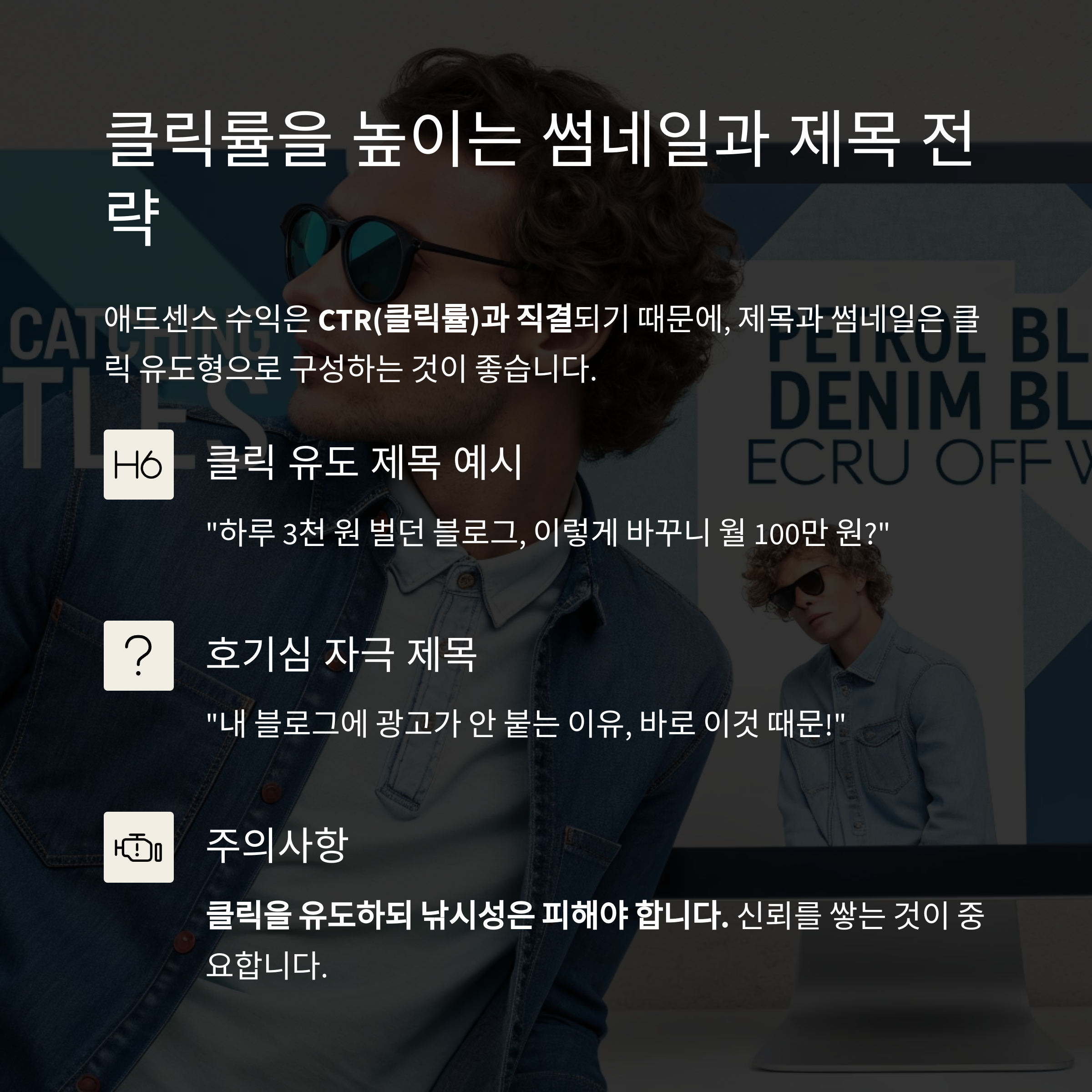 중요한 점은 클릭을 유도하되 낚시성은 피해야 한다는 것입니다.