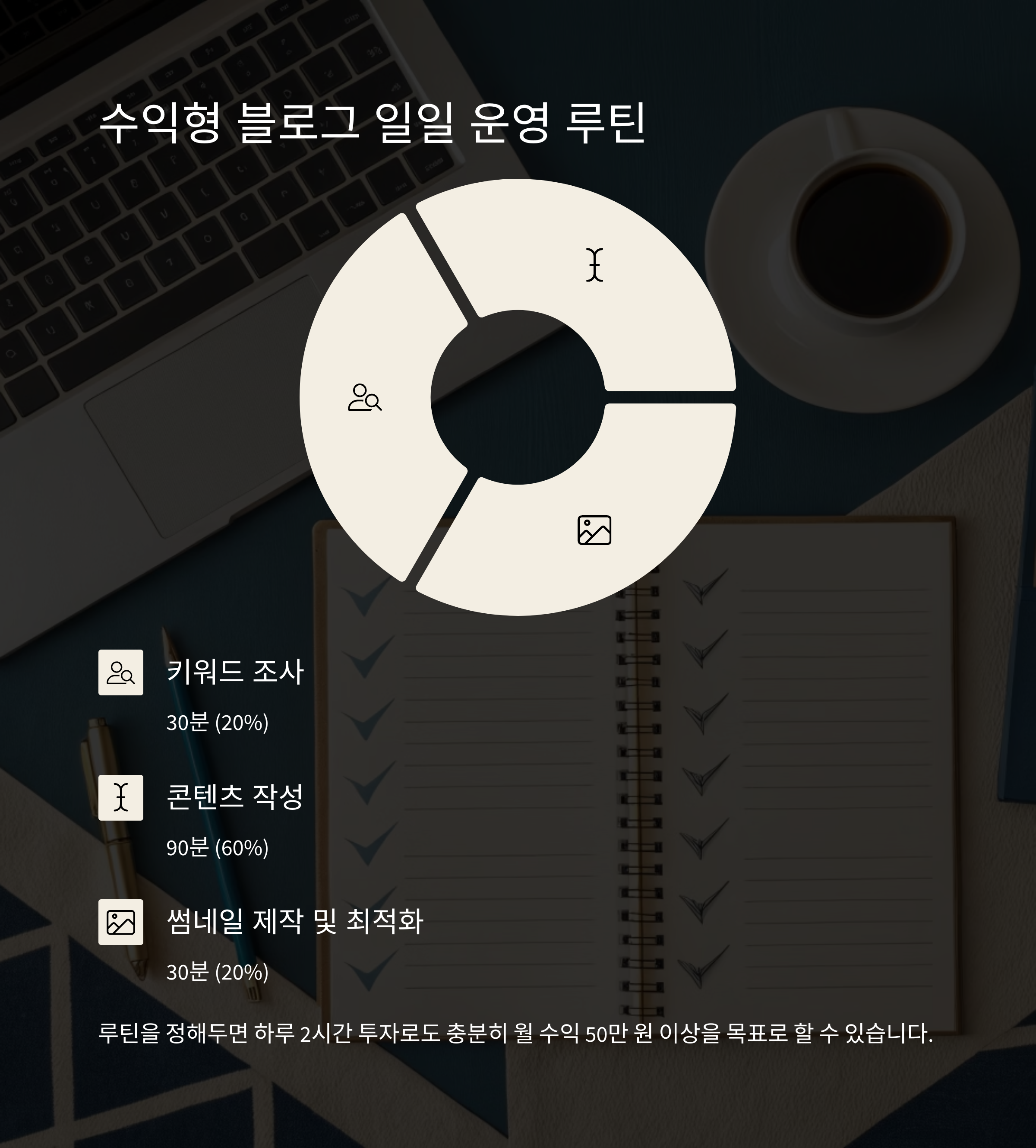 루틴을 정해두면 하루 2시간 투자로도 충분히 월 수익 50만 원 이상을 목표로 할 수 있습니다.