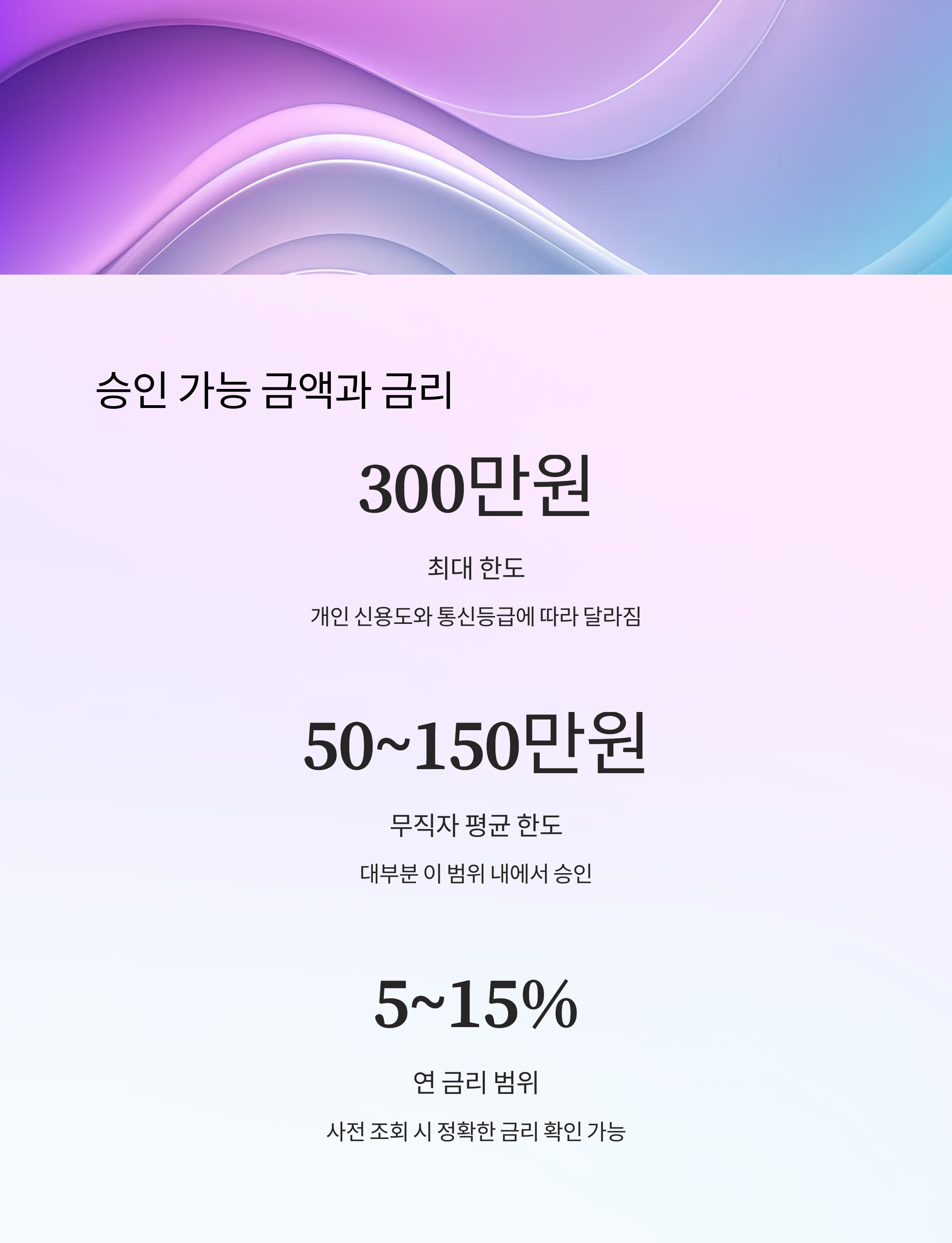 무직자일 경우 보통 50~150만원 수준의 승인이 많으며,