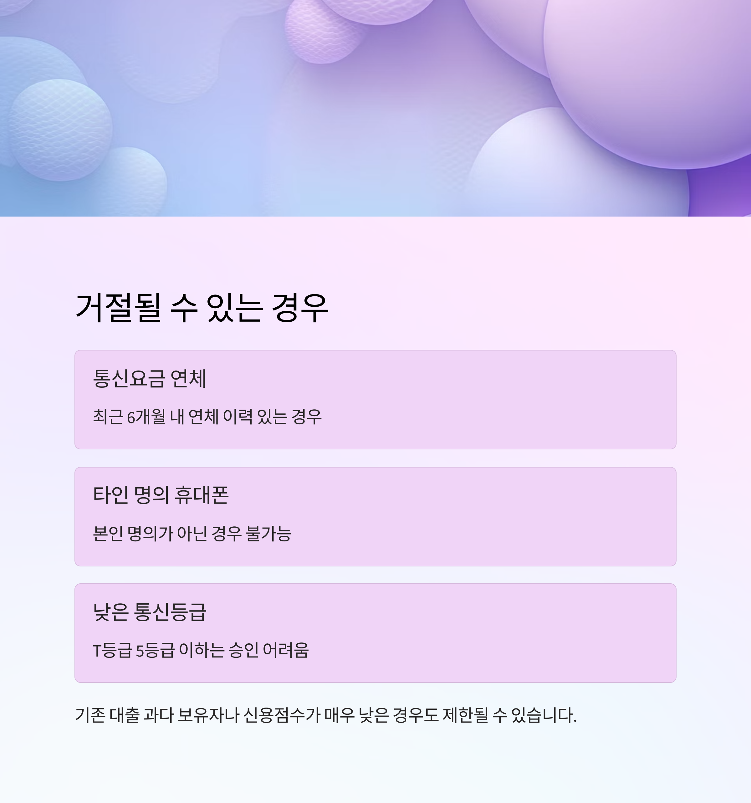 "통신등급이 5등급 이하" 등은 대표적인 거절 사유입니다.