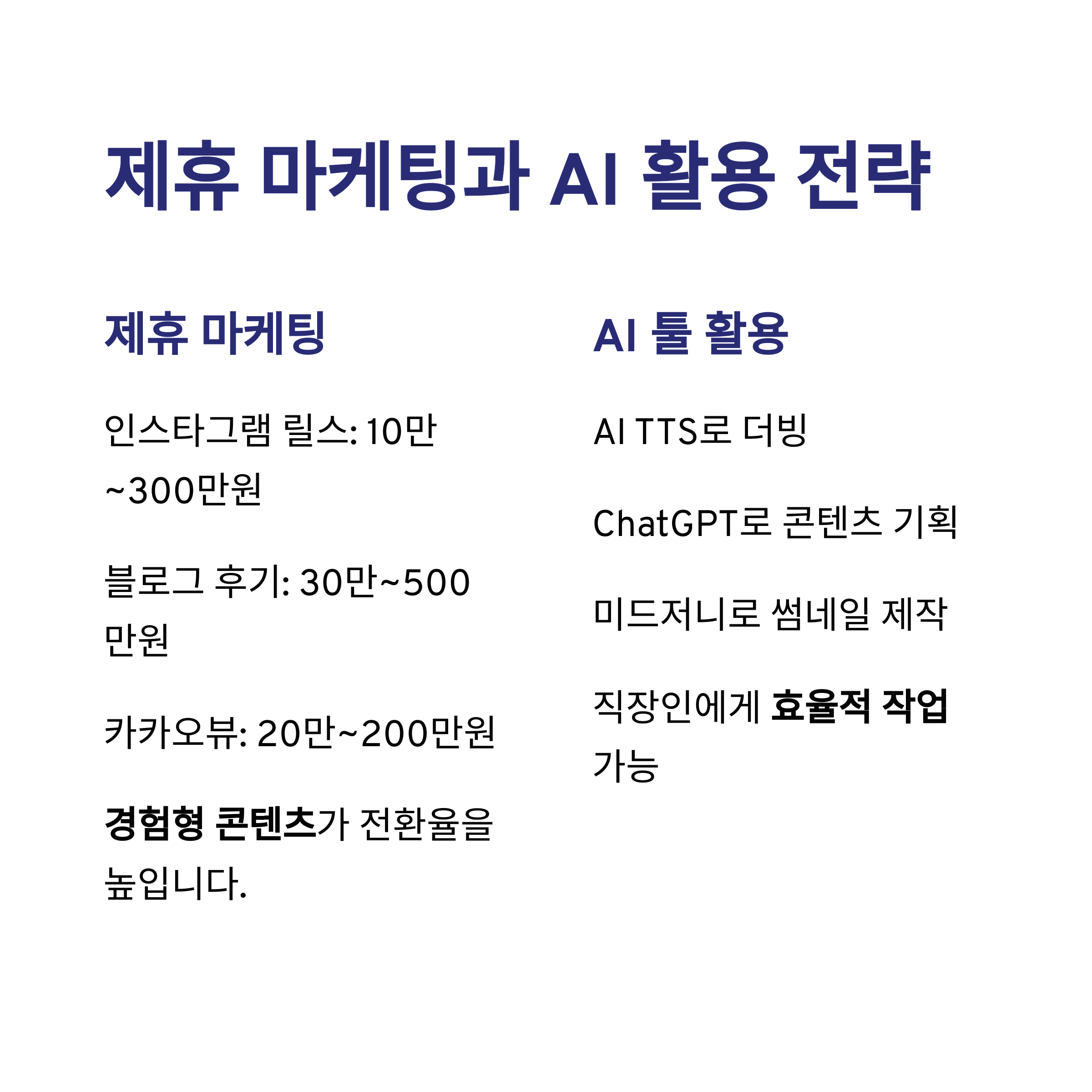 | AI툴 활용 | 주말 오전 | 2회 | 1주 콘텐츠 미리 제작 |