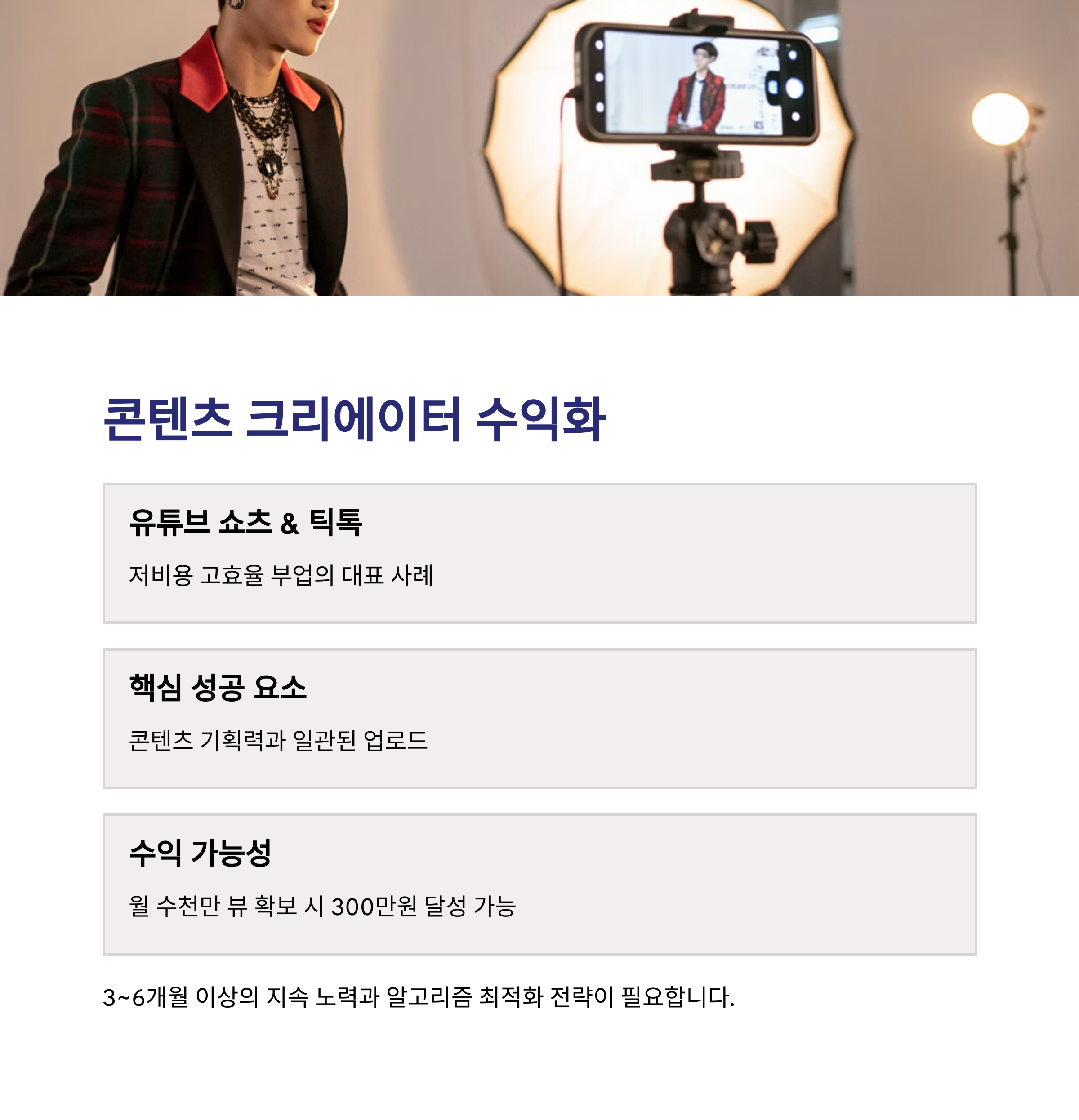 틱톡, 유튜브 쇼츠는 저비용 고효율 부업의 대표 사례로 꼽힙니다.