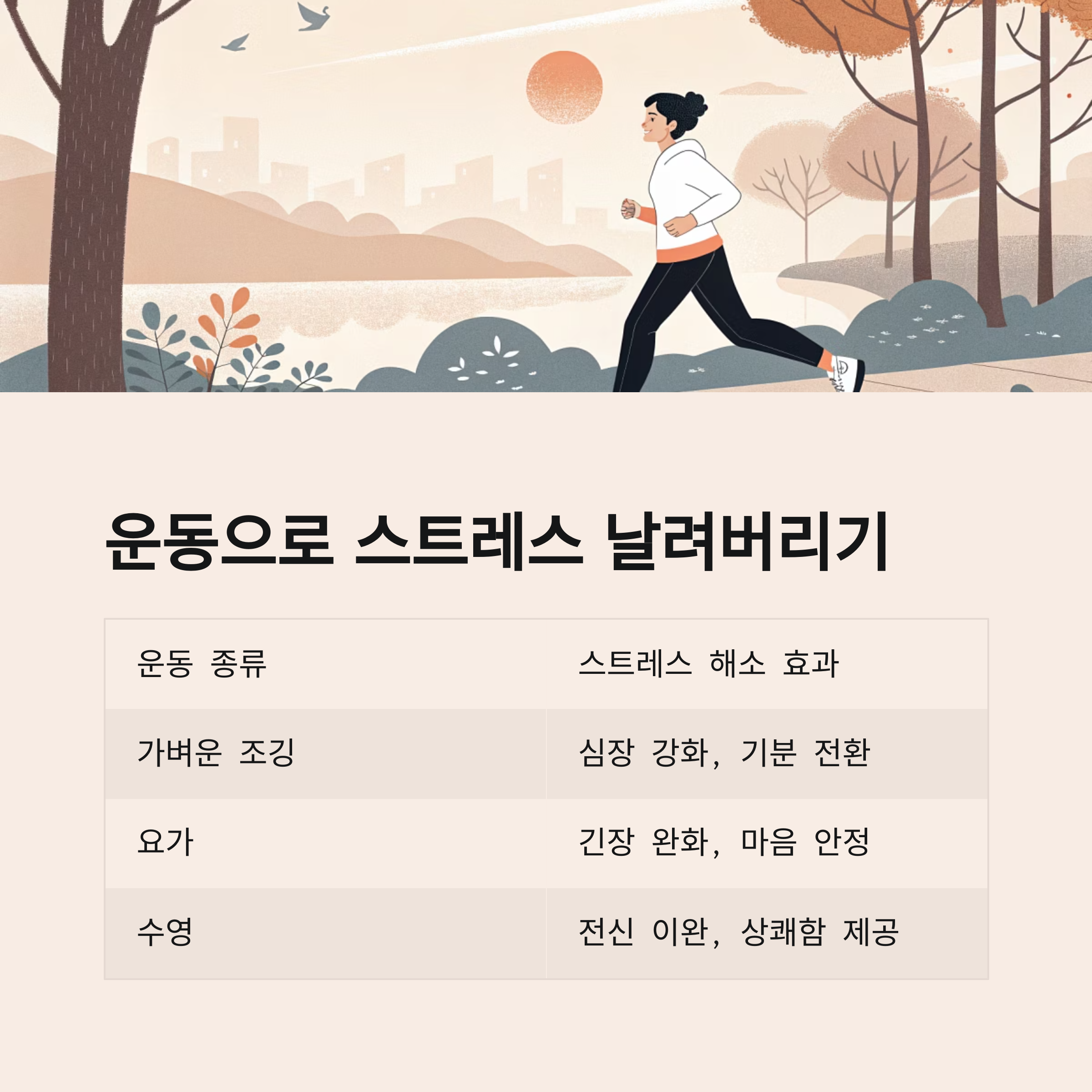 운동 종류 스트레스 해소 효과