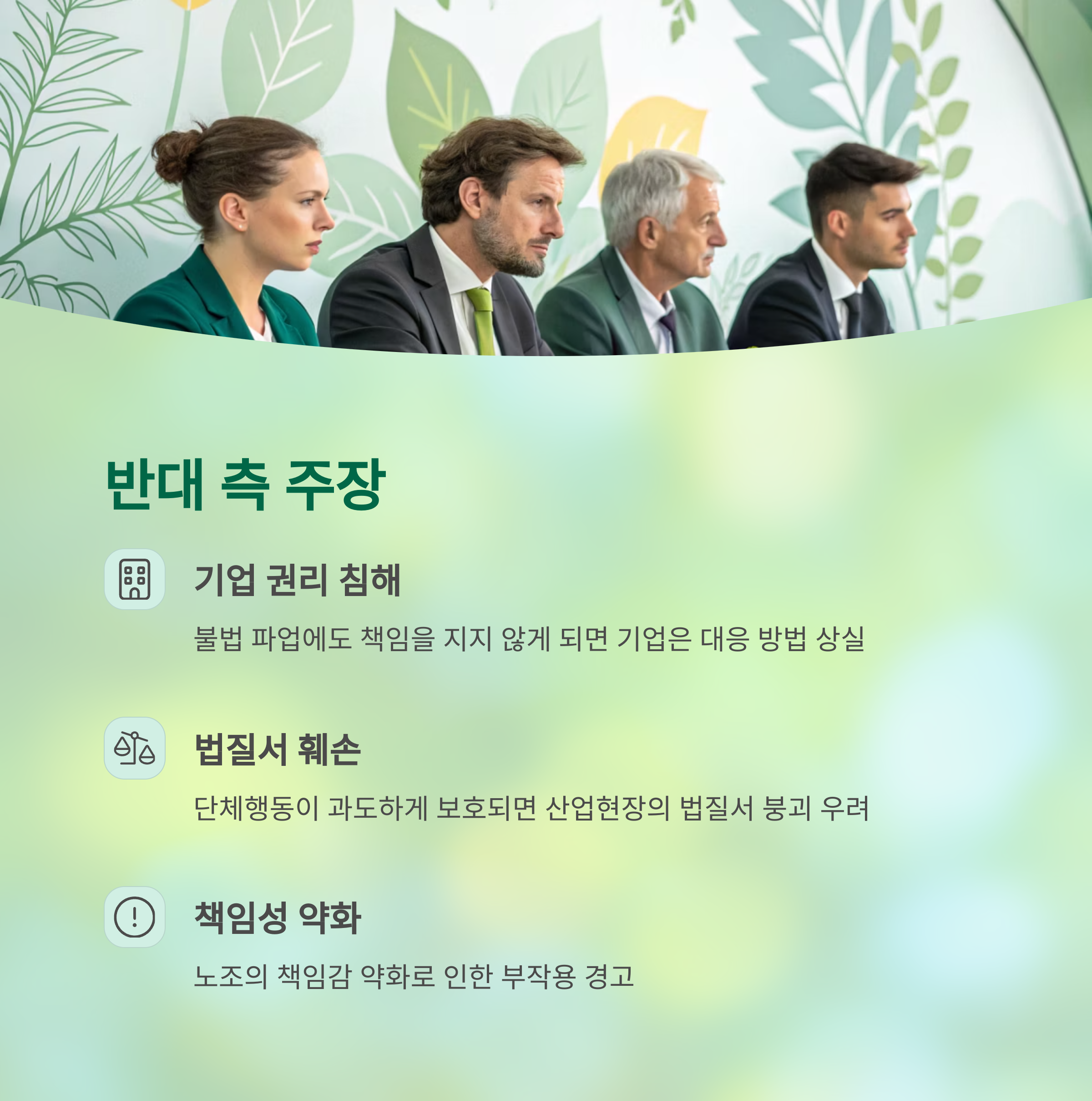 또한, 단체행동이 과도하게 보호되면 산업현장의 법질서가 무너질 수 있다며