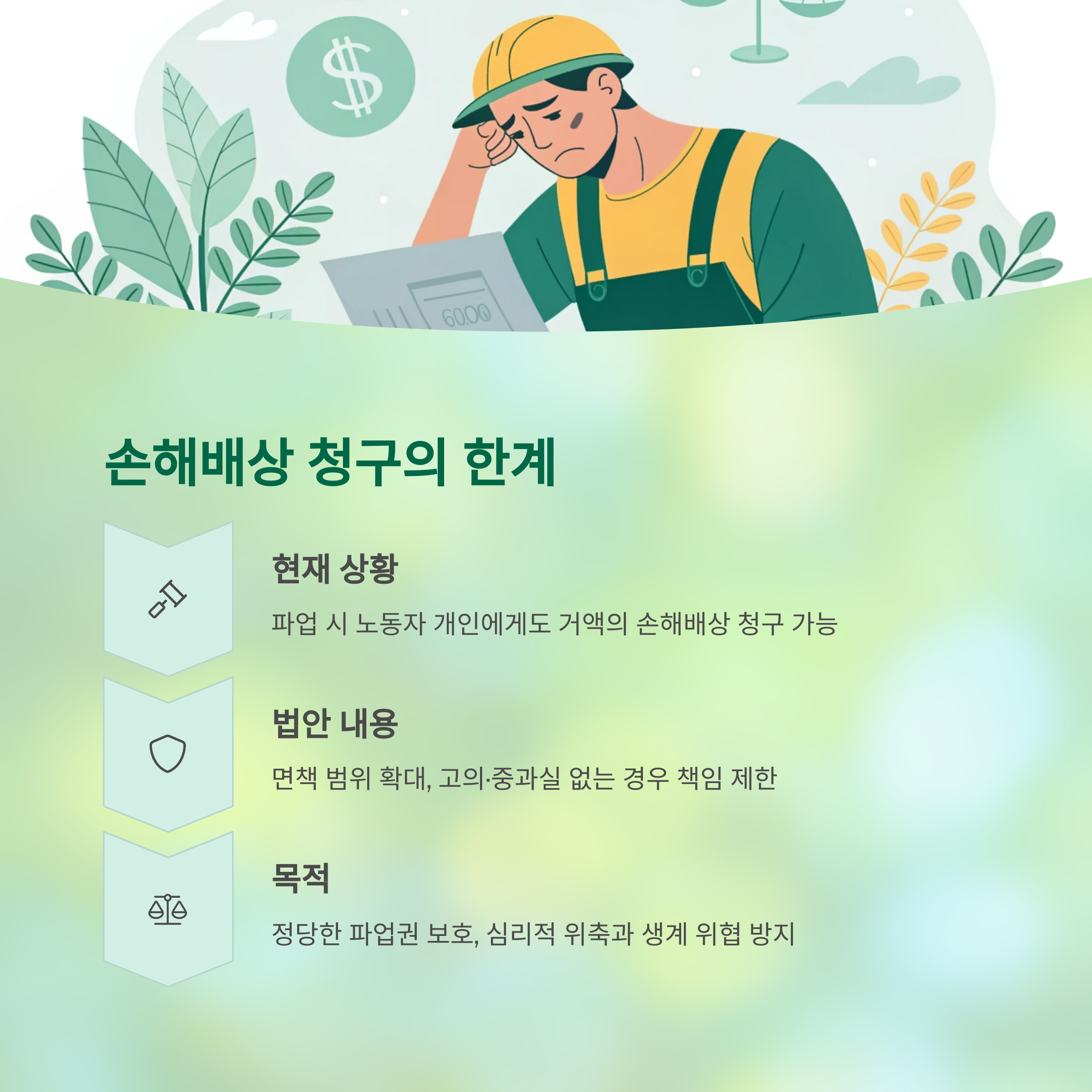 노랑봉투법은 노동자의 파업이나 집단행동에 대해 무분별한 손해배상 청구를 제한하기 위한 법적 장치로,