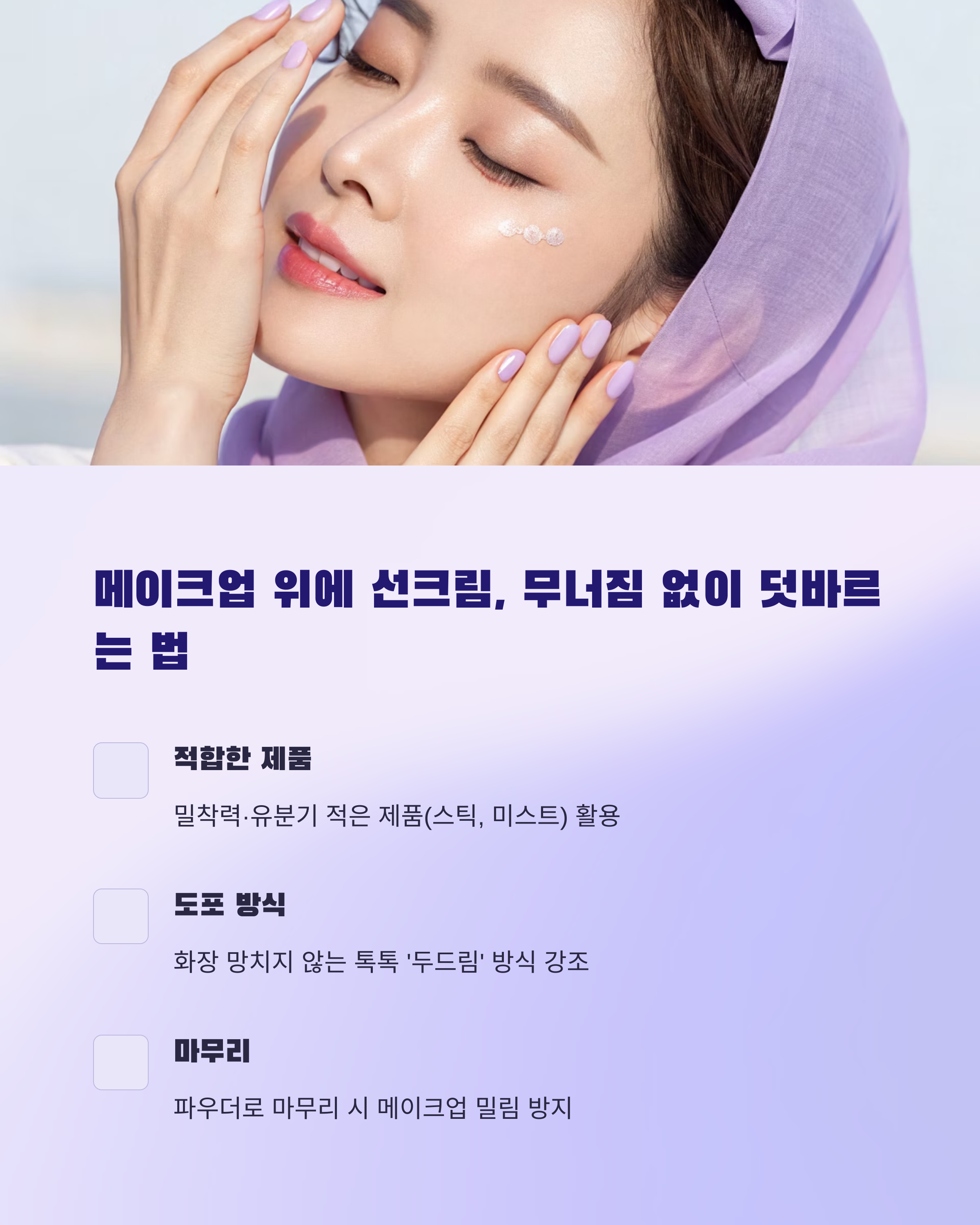 메이크업 위 선크림, 어떻게 해야 깨끗할까?