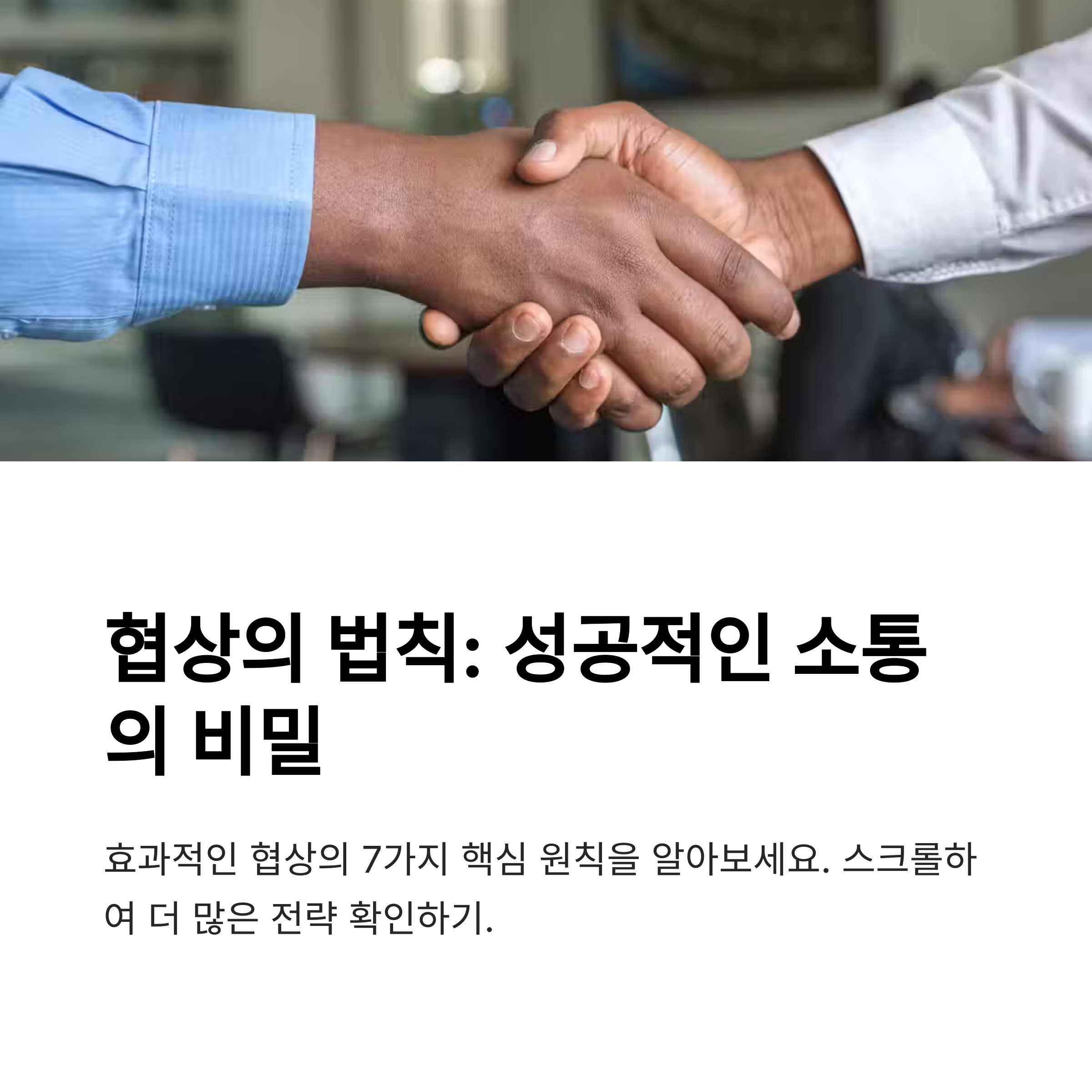 또한 기준은 협상 초반부터 투명하게 공유하는 것이 좋아요. 그래야 상대도 방어적인 태도 대신 대안을 제시할 수 있는 열린 자세를 가질 수 있거든요. 협상은 게임이 아니라 대화예요 😊