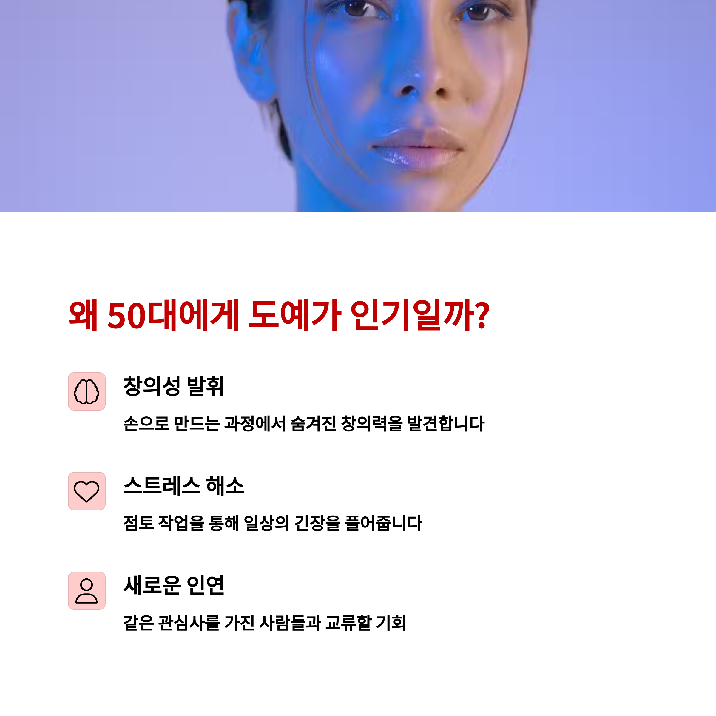 50대는 인생의 터닝포인트! 자녀가 독립하거나 은퇴를 준비하며 삶의 여유가 생기죠. 이 시기에 ‘나’를 위한 시간을 찾는 분들이 많아졌어요. 그래서 도예 같은 몰입형 취미가 각광받고 있어요.
