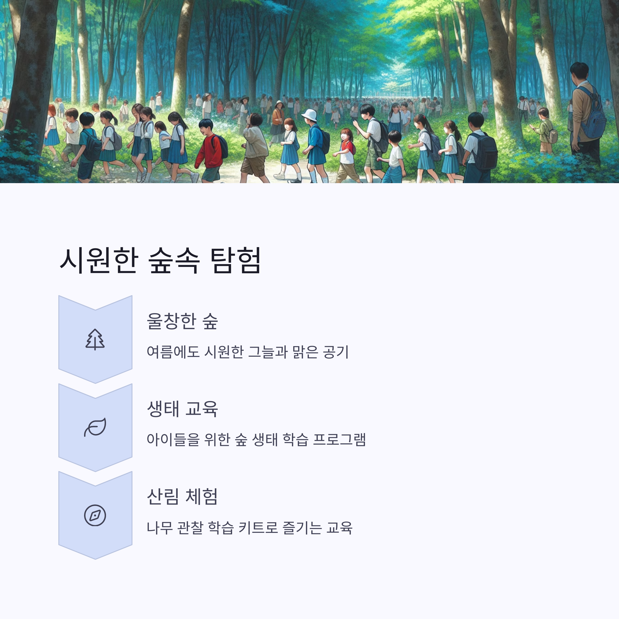 아이들을 위한 숲 생태 교육, 나무 관찰 학습 키트 등도 운영되어