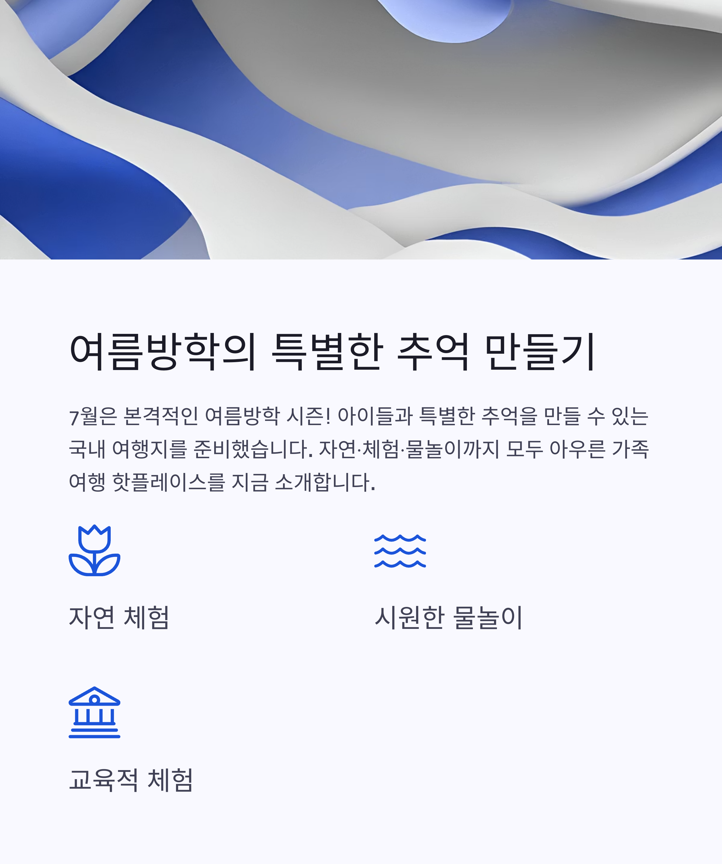 국내 여행지를 찾는 분들을 위해, 자연·체험·물놀이까지 모두 아우른