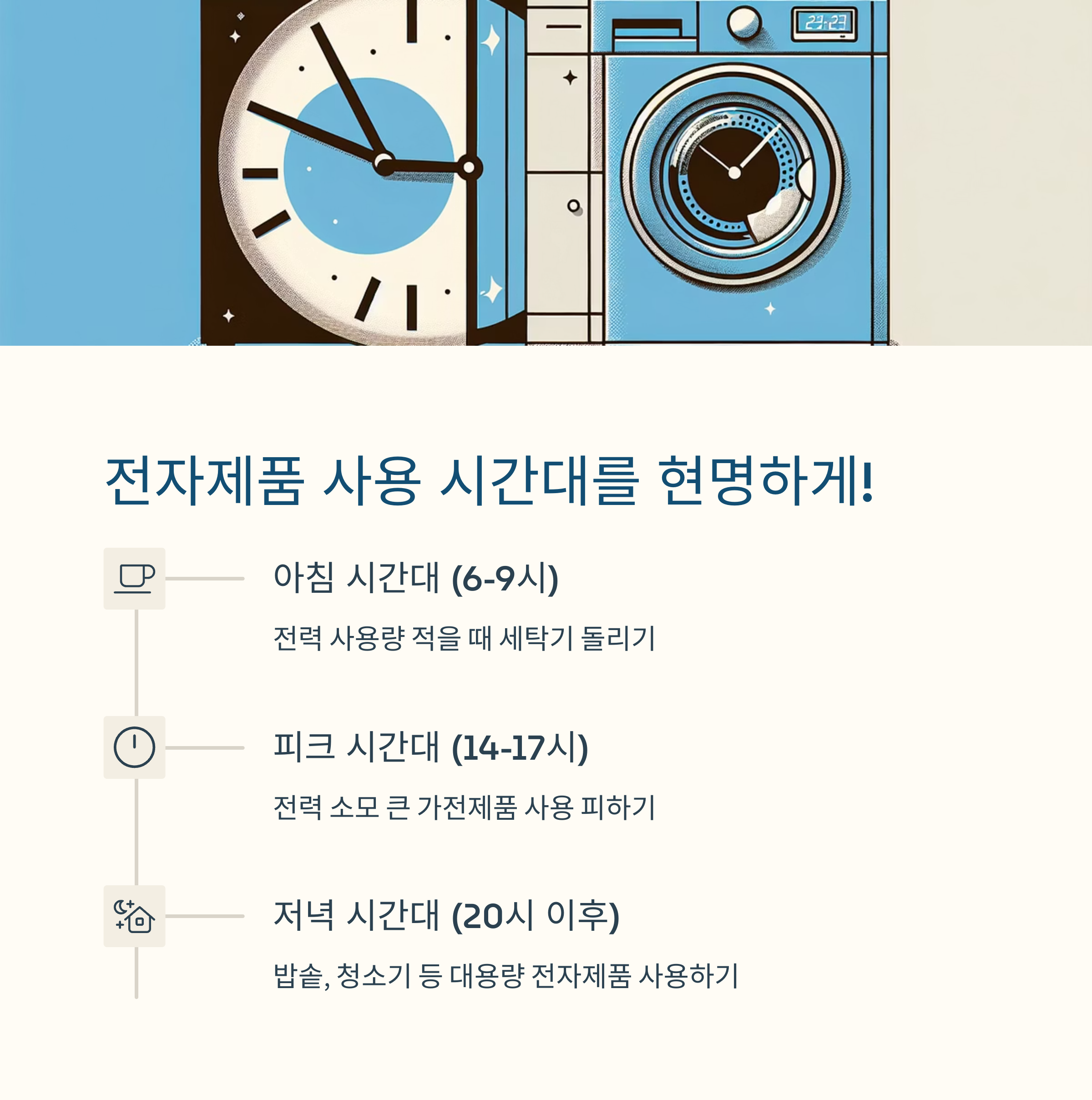 세탁기와 전자제품은 피크 시간대 피해 사용하세요