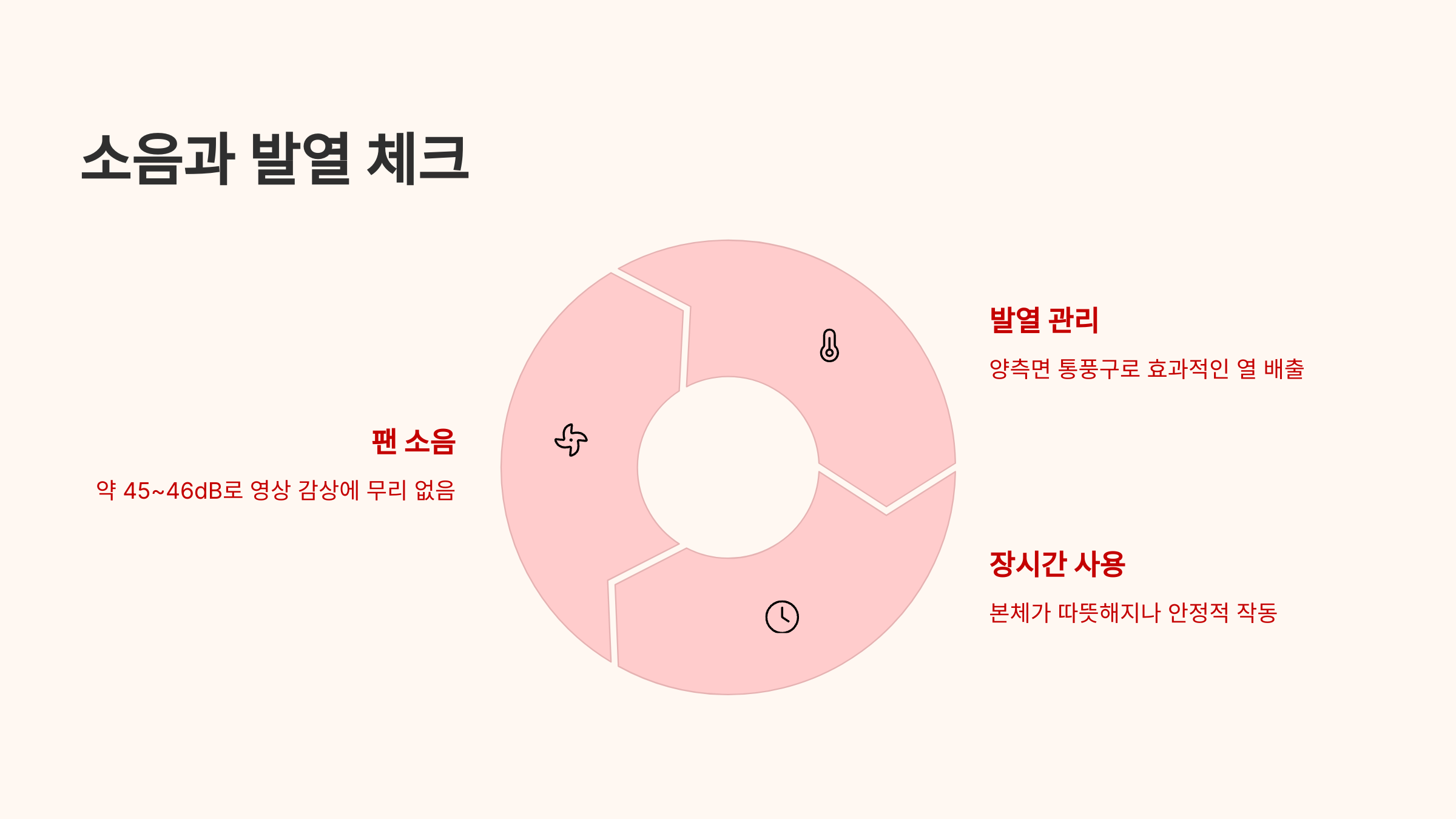 장시간 사용해도 발열이 심하지 않아 안정적인 느낌을 줍니다.