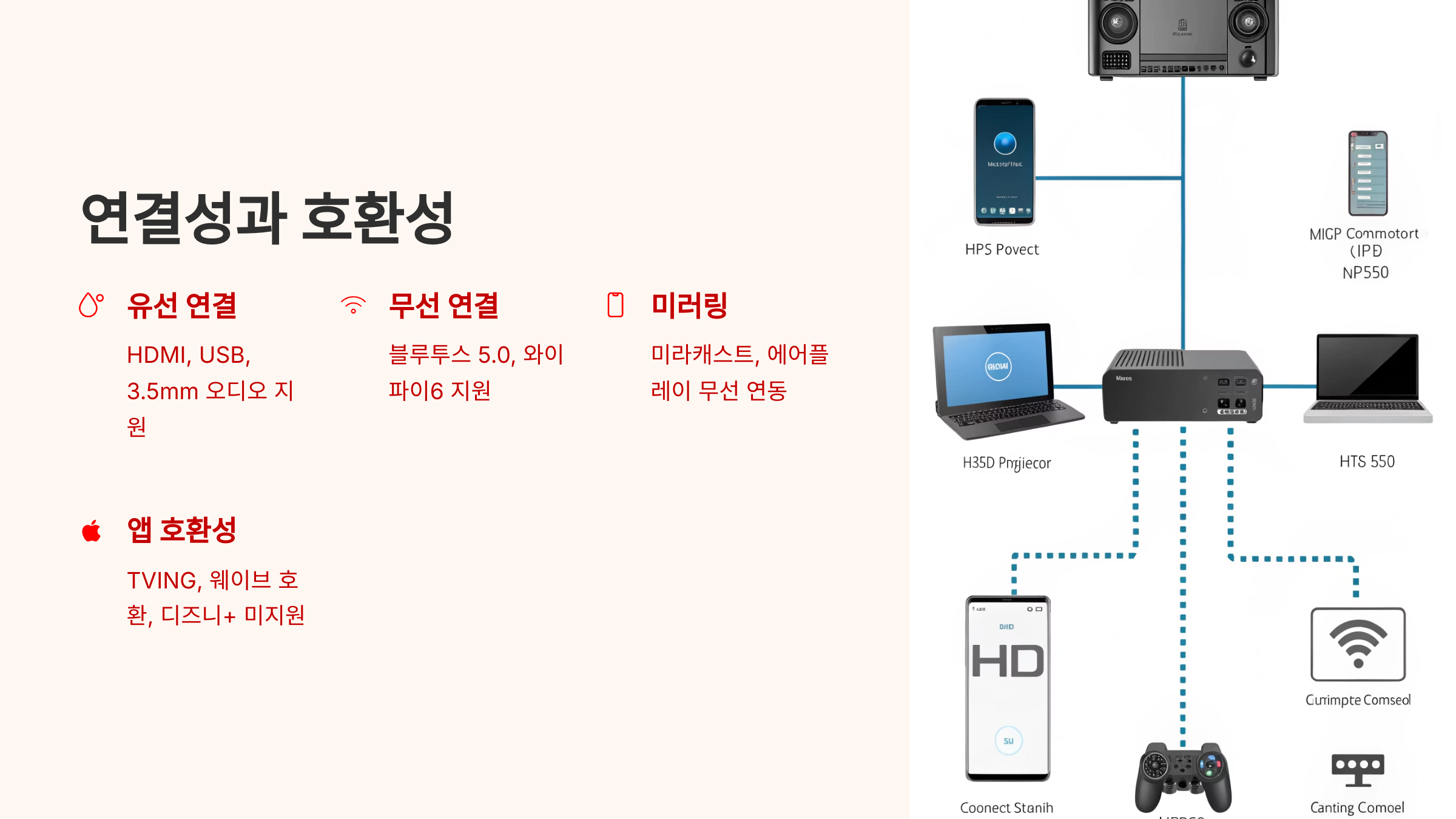 특히 미러링 기능이 있어 무선으로도 간편하게 연결할 수 있다는 점이 인상적이었습니다.