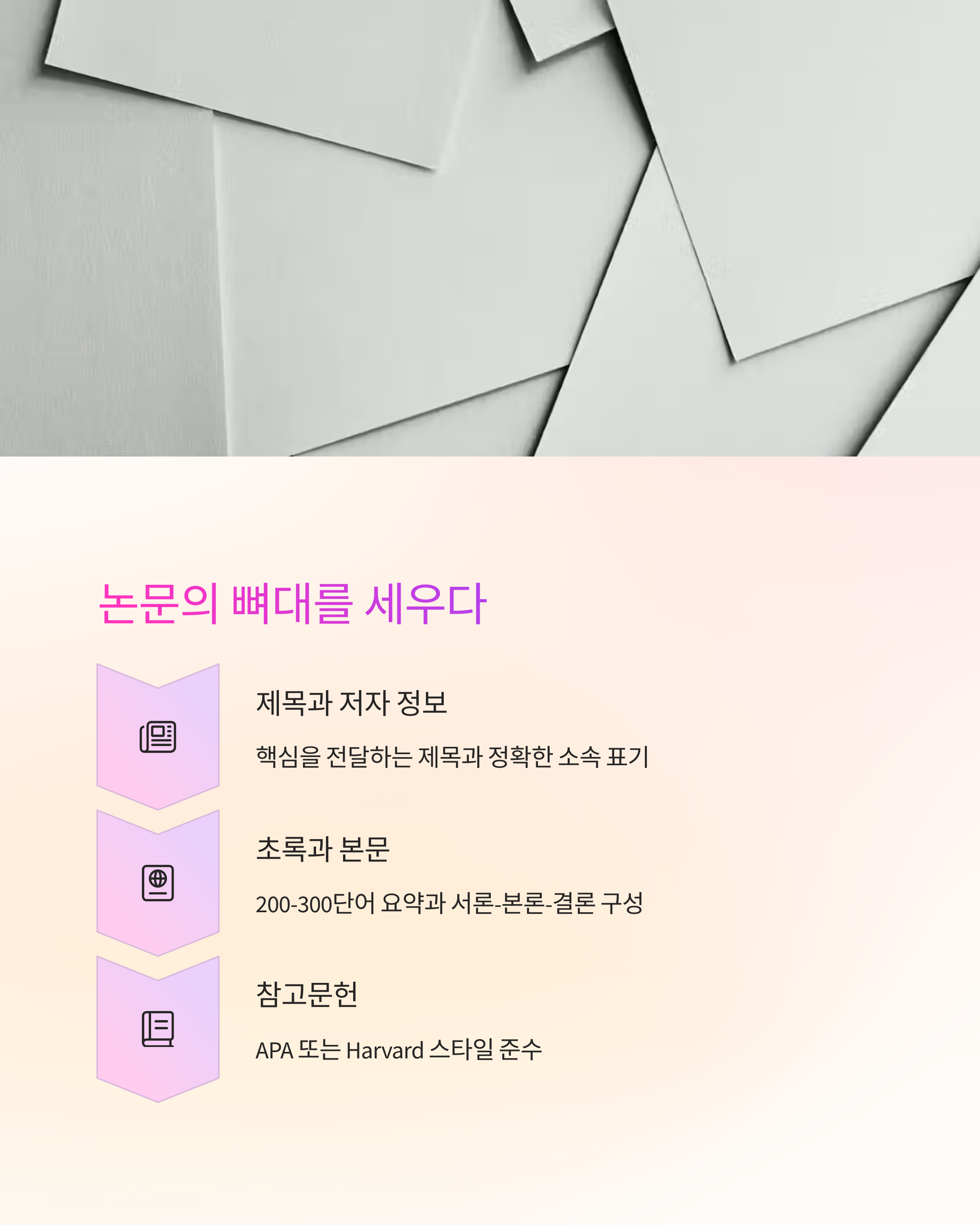 논문 구성에서 중요한 건 흐름이에요. 제목에서 시작해 초록, 서론, 본론, 결론으로 이어지는 일관된 구조가 유지돼야 하고, 중복 없이 논리적으로 전개돼야 해요. 표나 그림이 있다면 그에 대한 해석도 구체적으로 포함해야 해요.
