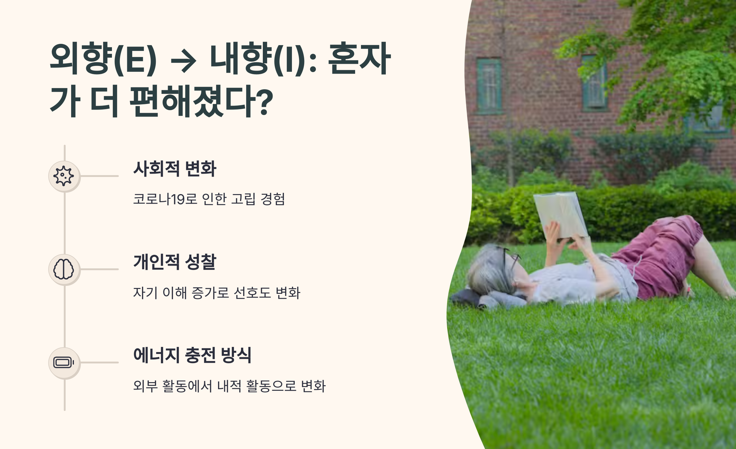외향(E) → 내향(I): 혼자가 더 편해졌다?