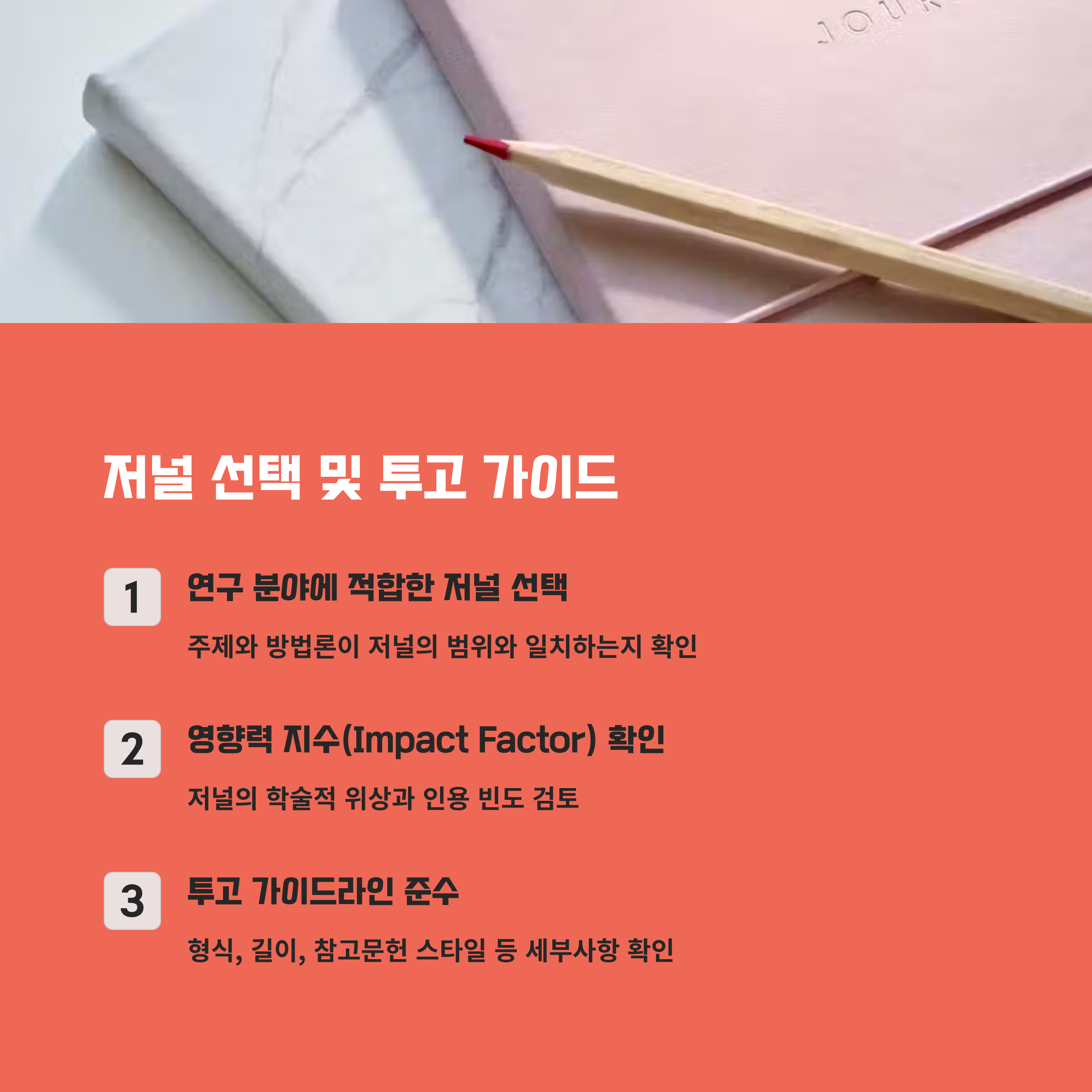 논문은 결국 ‘설득의 글’이에요. 자신이 연구한 내용을 최대한 명확하게, 이해하기 쉬운 영어로 풀어내는 것이 핵심이죠. 여기서 논리적 구조와 간결함이 정말 중요한 이유랍니다. 😊 다음은 작성한 논문을 어디에 제출할지, 저널 선택과 투고 요령에 대해 알려줄게요! 🚀